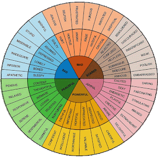 One of my favorite resources for feelings that I use both in my practice and my own personal work is the Emotion Wheel from Gloria Willcox’s 1982 work “The Feeling Wheel: A Tool for Expanding Awareness of Emotions and Increasing Spontaneity and Intimacy.”